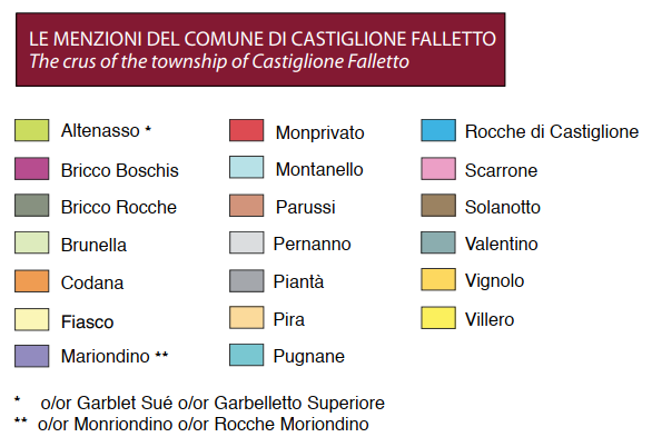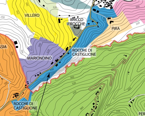 Zona di produzione: all’interno di questo “Cru” o Menzione Geografica ad altitudine media tra 300 e 350 mt. sono situati piccoli e ripidissimi vigneti. Si tratta di uno dei più piccoli e rinomati cru della zona del Barolo. Si sviluppa in lunghezza sul fianco di una collina molto ripida con esposizione est-sud-est. Nella parte bassa di questa striscia di terra lunga circa 1.5 Km e alta mediamente 60/70 metri, si trova un precipizio (Rocche) che in alcuni punti arriva a misurare 150 mt..